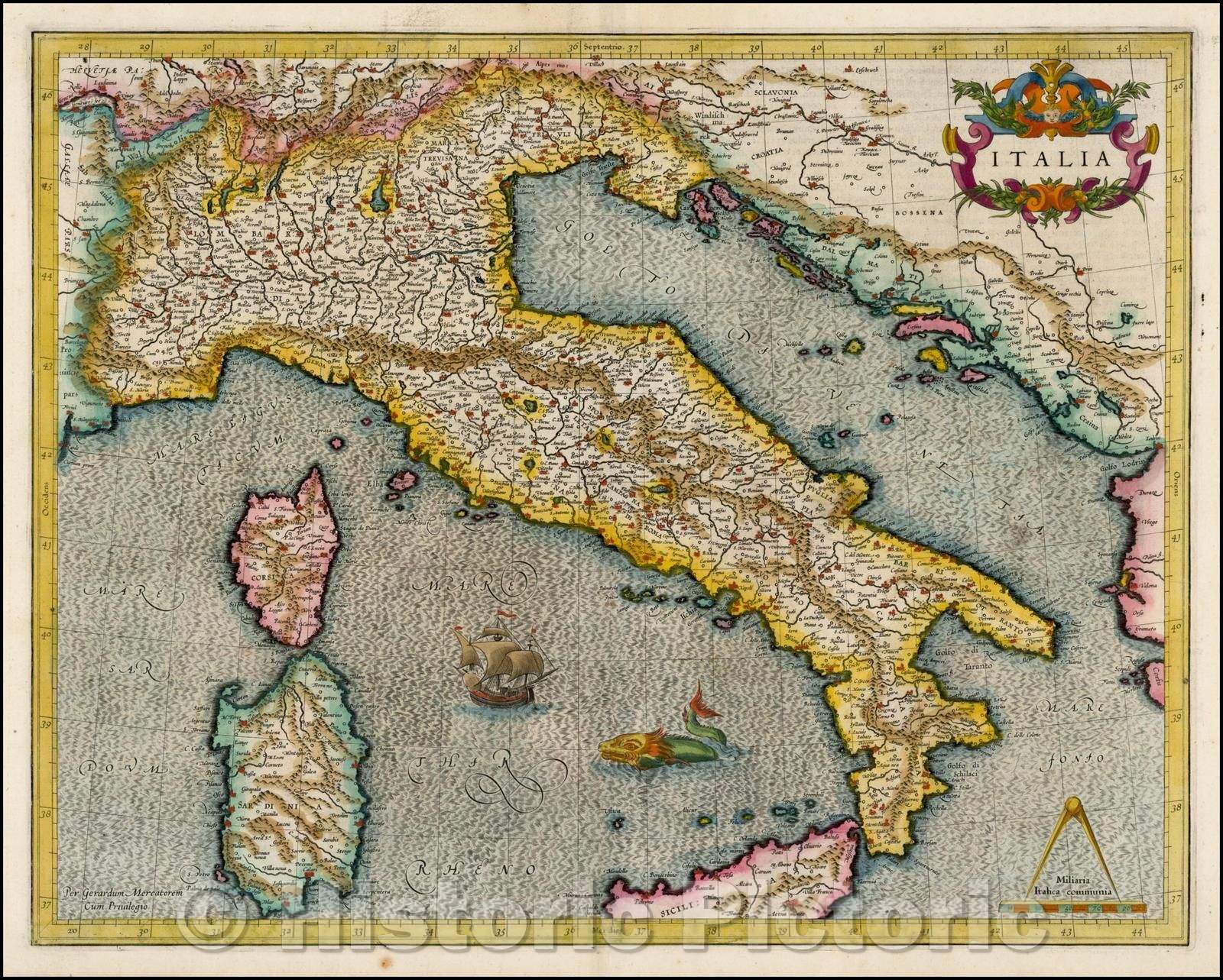 Historic Map - Italy, 1589, Gerard Mercator v1