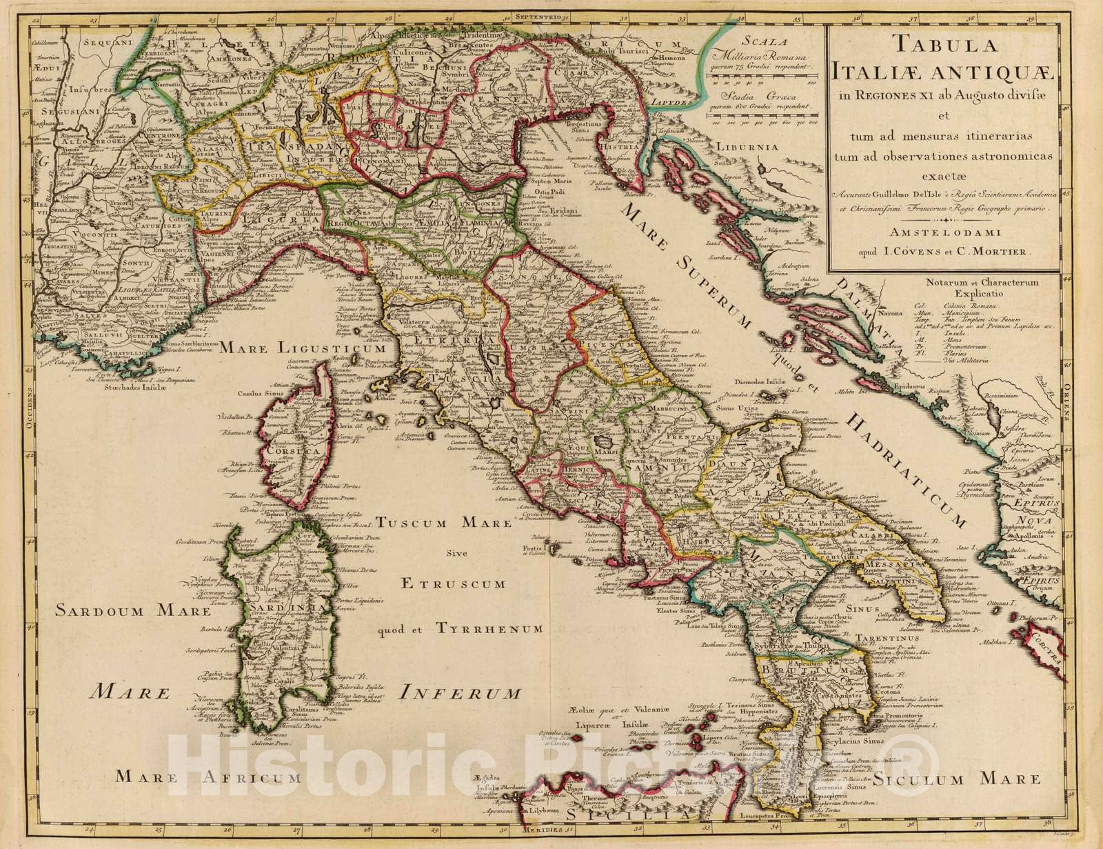 Historic Map : Italy, 1742 Italiae Antiquae in regiones XI ab Augusto divisae. , Vintage Wall Art