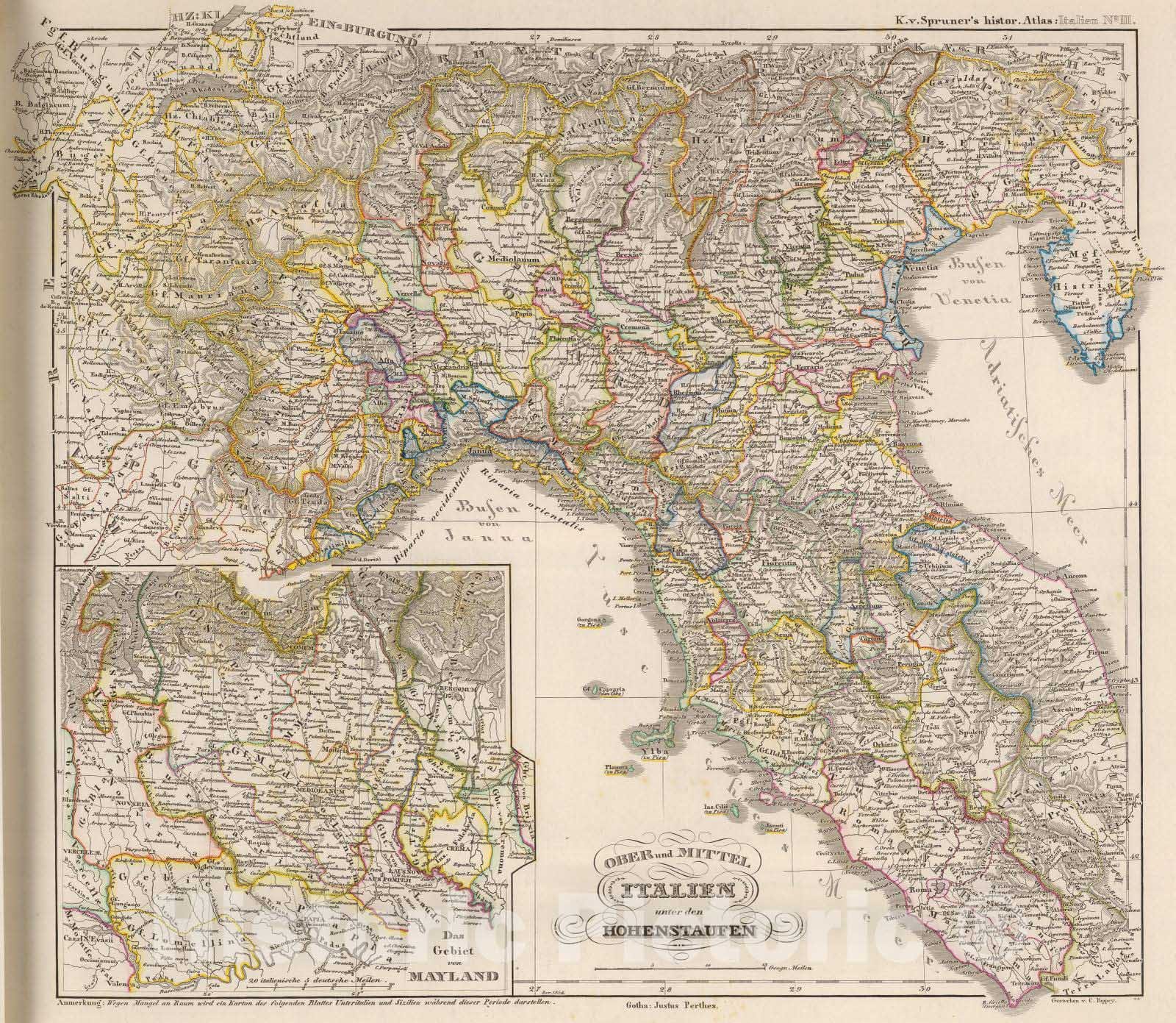 Historic Map : Italy, 1854 Ober und Mittel Italien unter den Hohenstaufen. , Vintage Wall Art