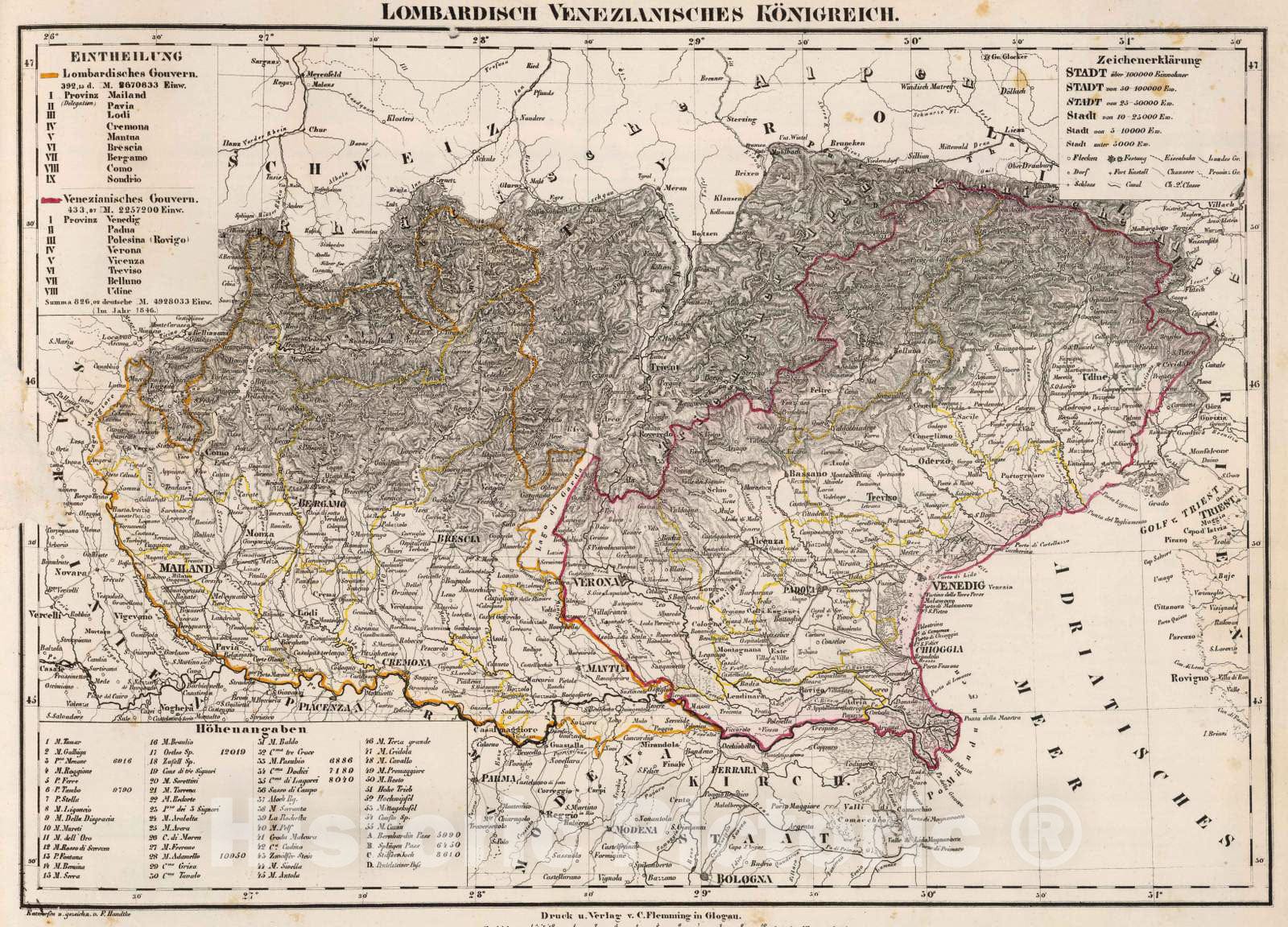 Historic Map : Italy, 1855 Lombardisch Venezianisches Konigreich. , Vintage Wall Art