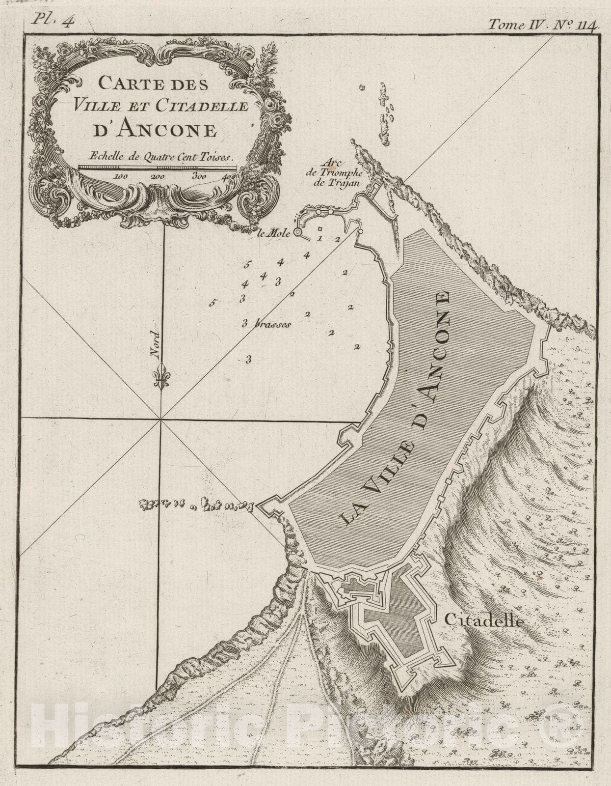 Historic Map : Italy , Ancona (Italy), 1764 Carte des ville et citadelle d'Ancone. , Vintage Wall Art