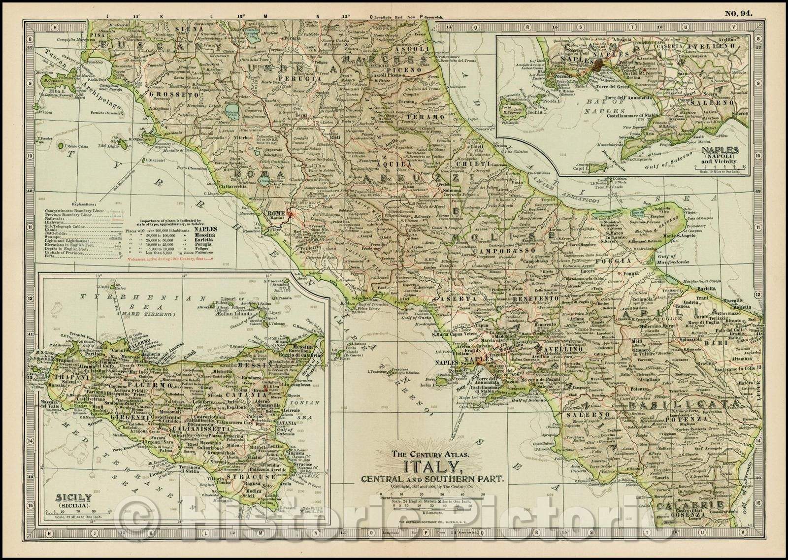 Historic Map - Italy, Central and Southern Part, 1897, The Century Company - Vintage Wall Art