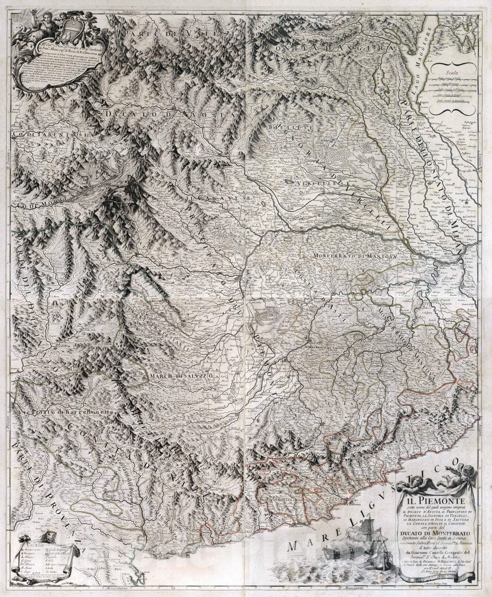 • Historic Map : Italy, , Europe 1691 Composite map: Il Piemonte sotto nome del quale vengono , Vintage Wall Art