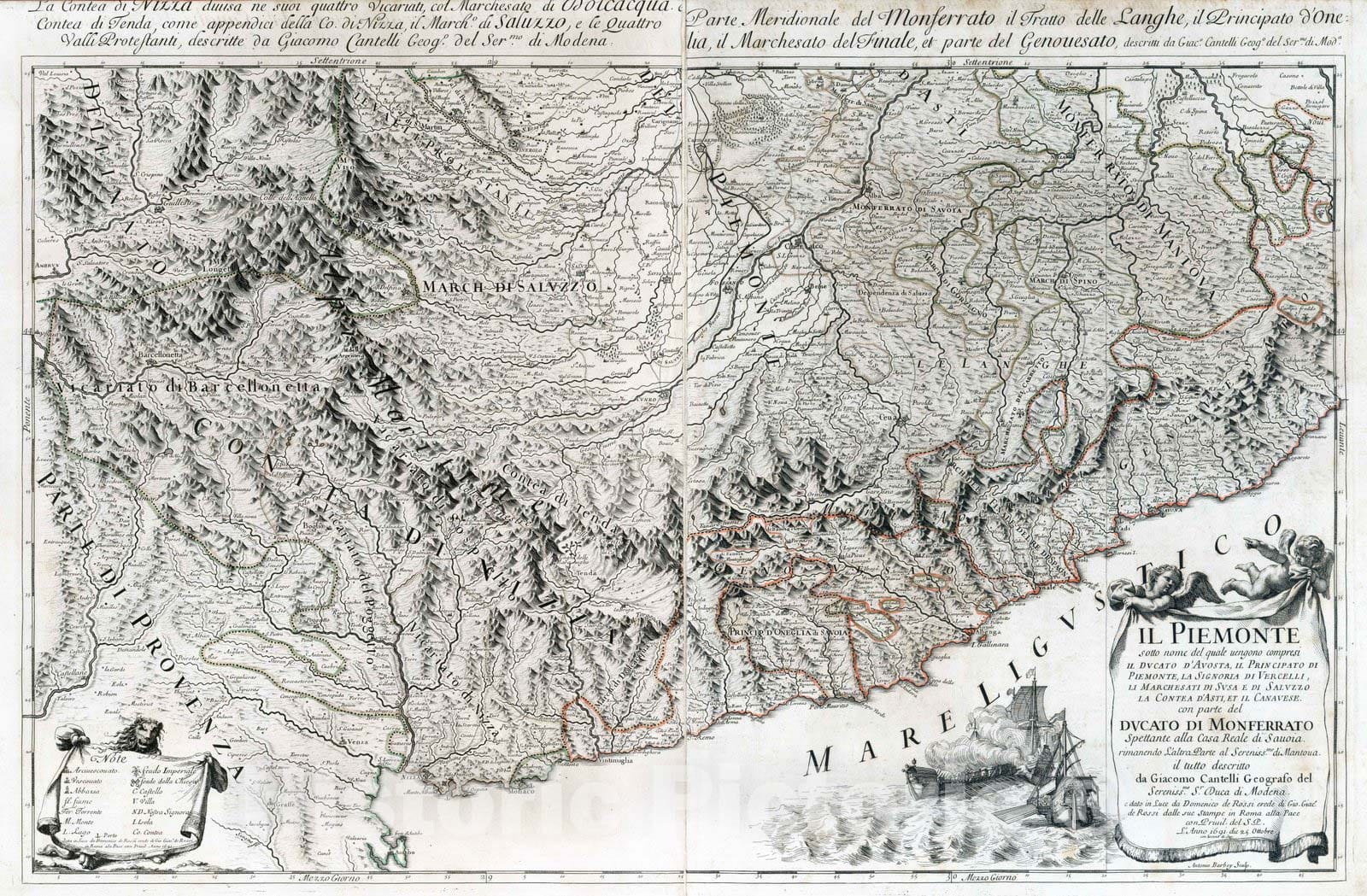 Historic Map : Italy, , Europe 1691 Il Piemonte sotto nome del quale vengono, Map 110-111 , Vintage Wall Art