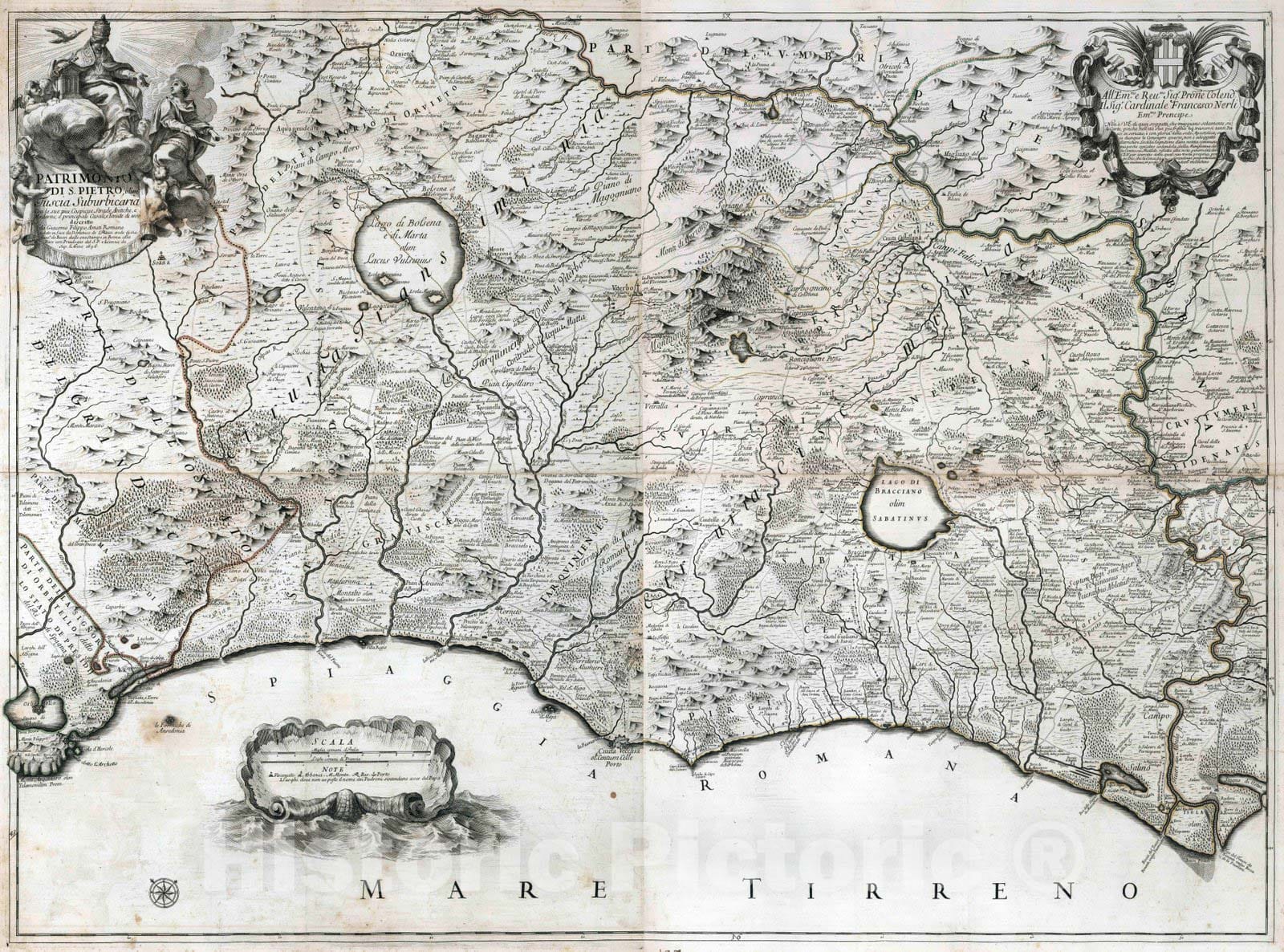 • .Historic Map : Italy, , Europe 1696 Composite map: Patrimonio di S. Pietro, olim Tuscia Suburbicaria, sheets 124-127 , Vintage Wall Art