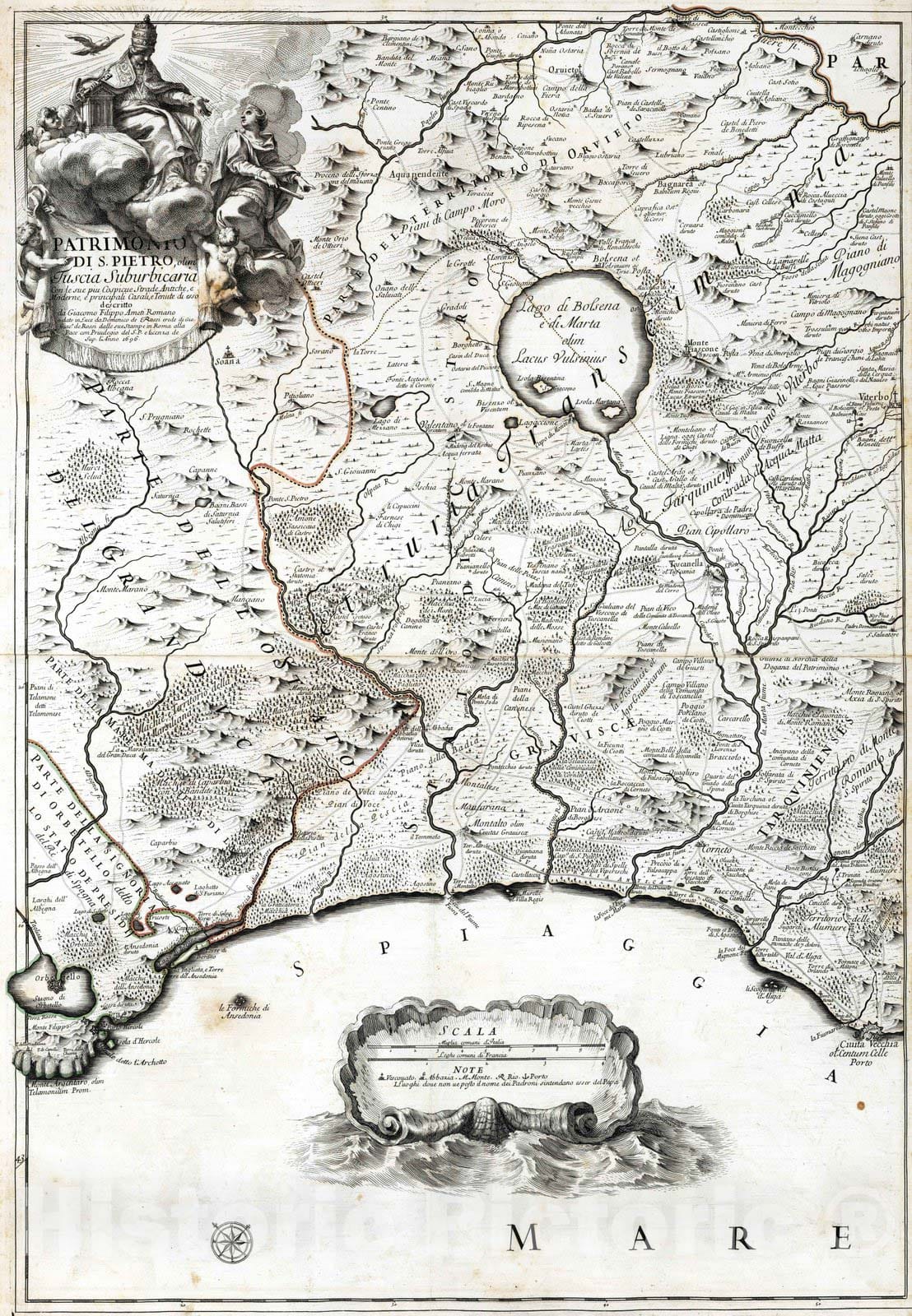 Italy, , Europe 1696 Patrimonio di S. Pietro, olim Tuscia Suburbicaria. Map 124-125 , Vintage Wall Art