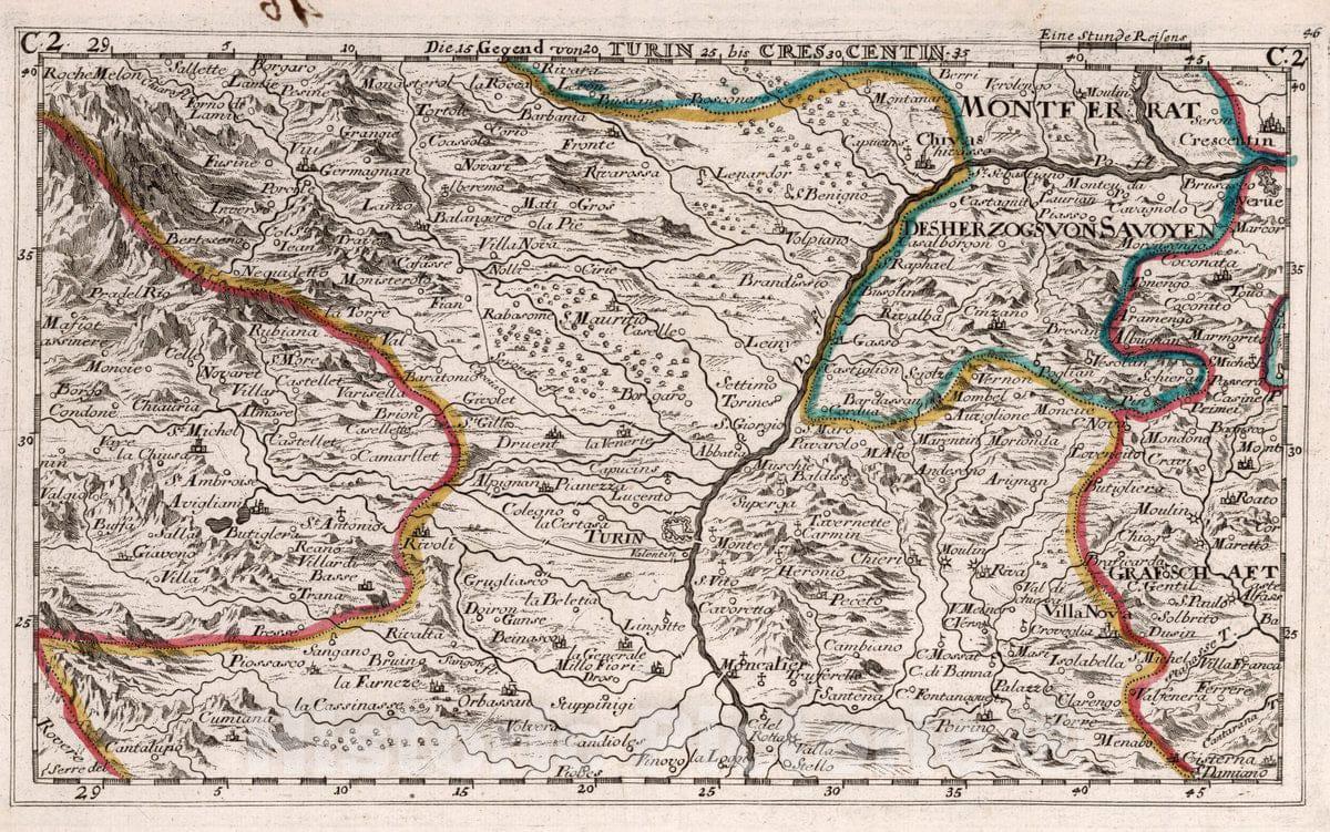 Italy, , Europe 1716 Die Gegend von Turin bis Crescentin , Vintage Wall Art