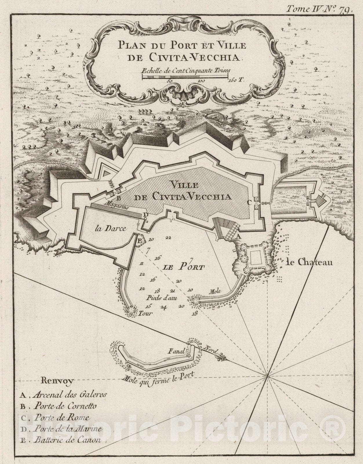 Historic Map : Italy, , Europe 1764 Plan du Port et Ville de Civita-Vecchia , Vintage Wall Art
