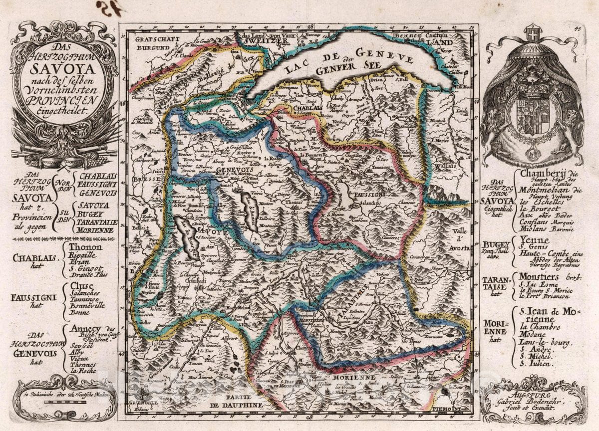 Historic Map : Italy, , Europe Das Hertzogthum Savoya nach des selben Vornehmbsten Provincien Eingetheilet, 1716, Vintage Wall Art