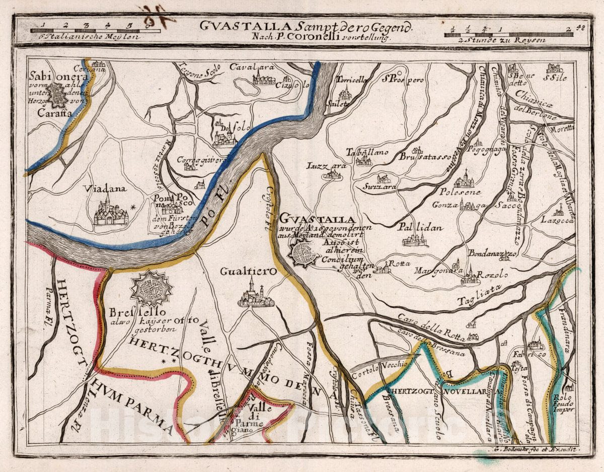Historic Map : Italy, , Europe Guastalla Sampt dero Gegend :, 1716 , Vintage Wall Art