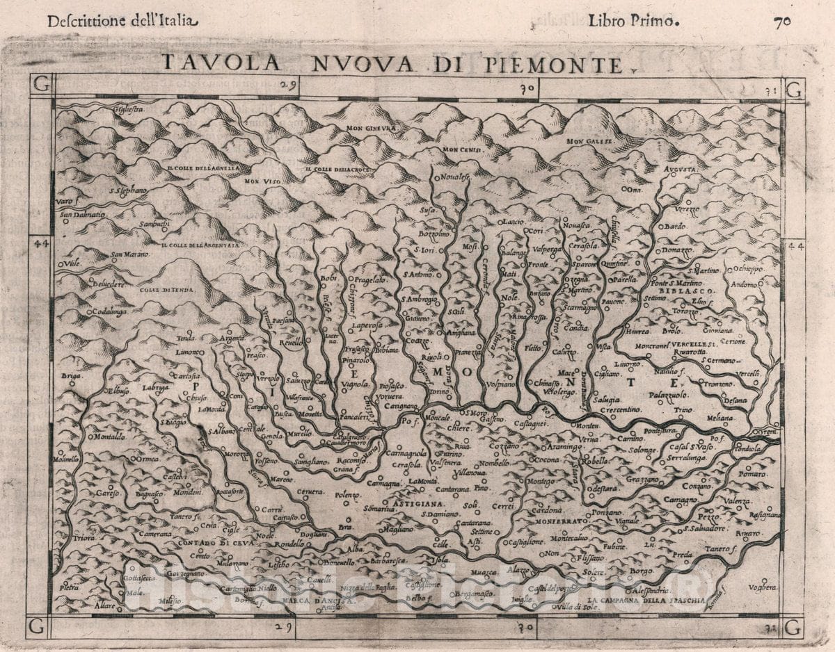 Historic Map : Italy, , Europe Tavola Nuova di Piemonte. Descrittione dell'Italia. Libro Primo, 1599 Atlas , Vintage Wall Art