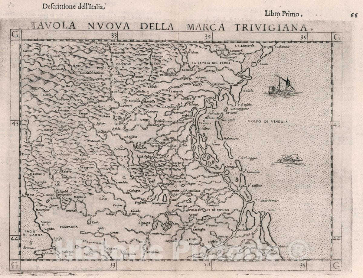 Italy, , Europe Tavola Nvova Della Marca Trivigiana, 1599 Atlas , Vintage Wall Art