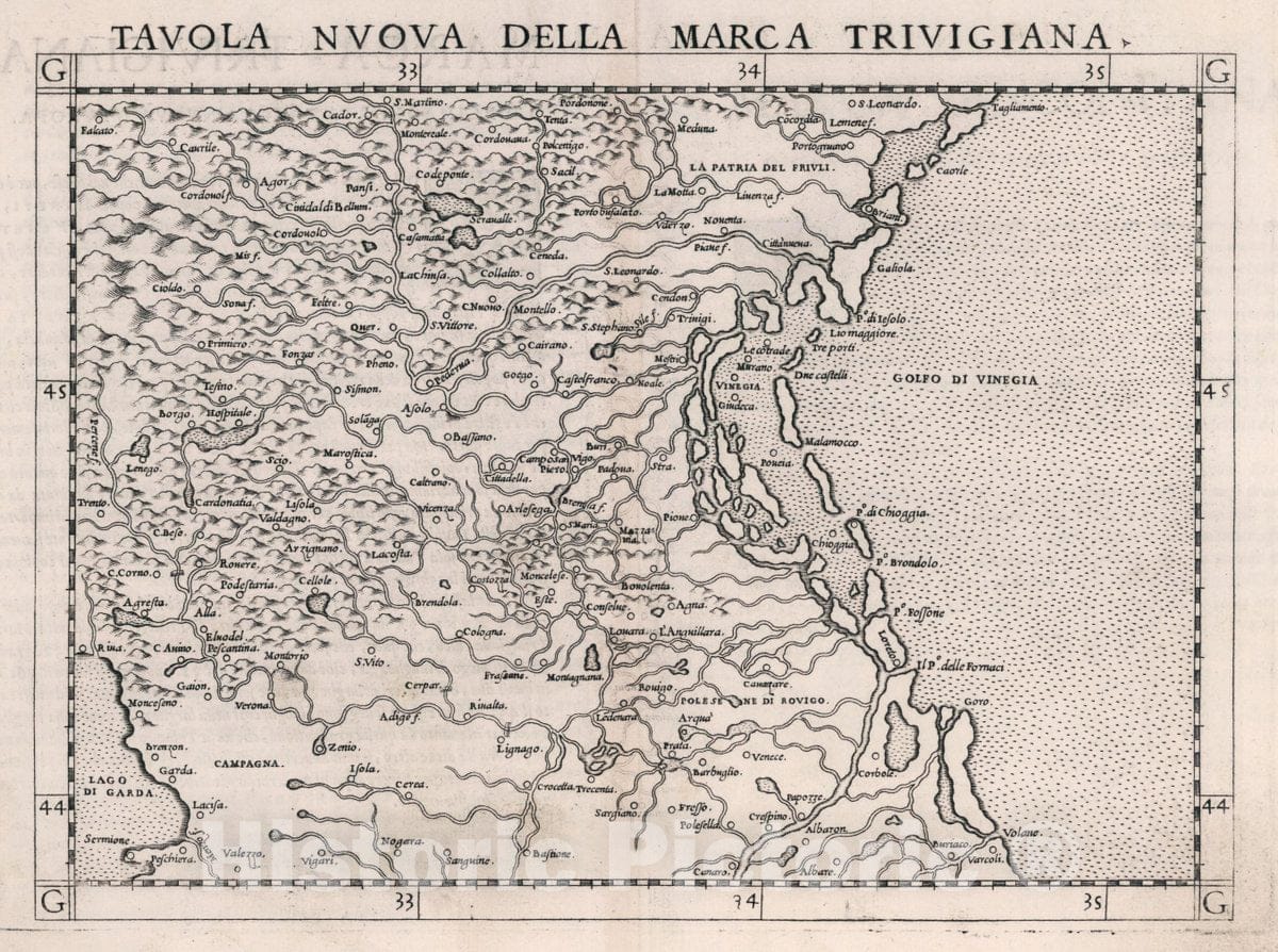 Historic Map : Italy, , Europe Tavola Nvova Della Marca Trivigiana, 1561 Atlas , Vintage Wall Art
