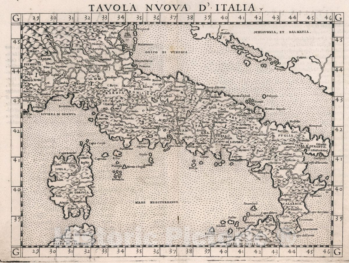 Historic Map : Italy, , Europe Tavola nvova d'Italia. Italia. Sesta tavola nvova d'Evropa, 1561 Atlas , Vintage Wall Art