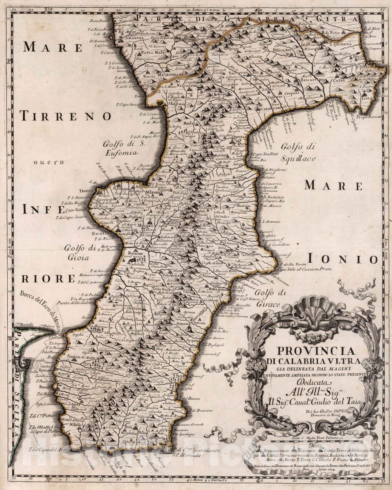 Historic Map : Italy, , EuropeProvincia di Calabria Ultra 1714 , Vintage Wall Art