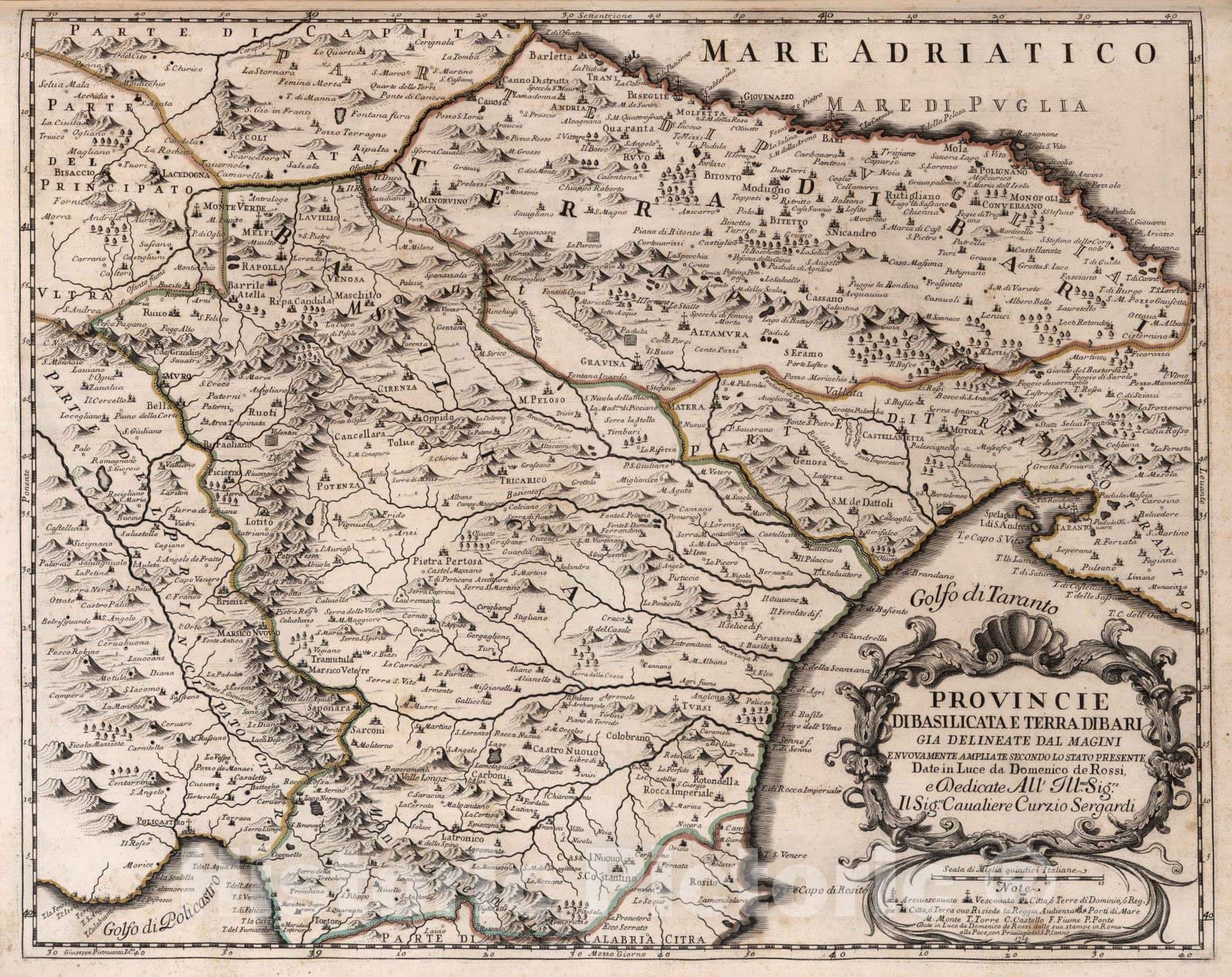 Historic Map : Italy, , EuropeProvincie di Basilicata e Terra di Bari 1714 , Vintage Wall Art