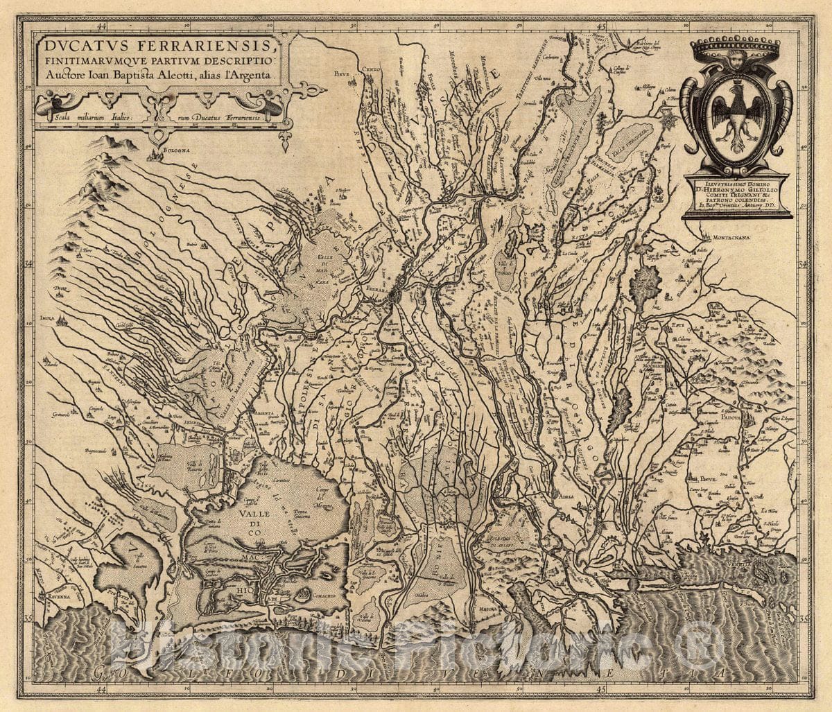 Historic Map : Italy , Ferrara, Italy, Ducatus Ferrariensis, Finitimarumque Partium Descriptio: Auctore Ioan, 1608 , Vintage Wall Art