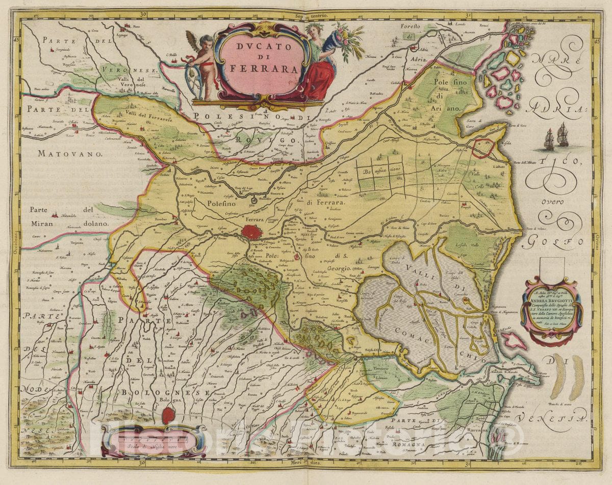 • .Historic Map : Italy, Ferrara Region (Italy) Atlas Maior Sive Cosmographia Blaviana, Ducato Di Ferrara, 1665 Atlas , Vintage Wall Art