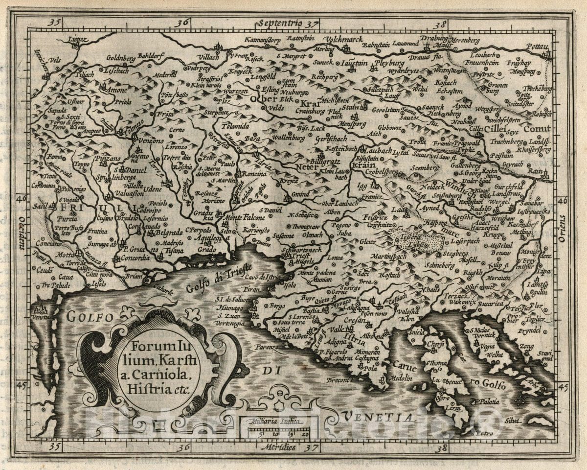 Historic Map : Italy, Forum Iulium, Karstia, Carniola, Histria etc, 1607 Atlas , Vintage Wall Art