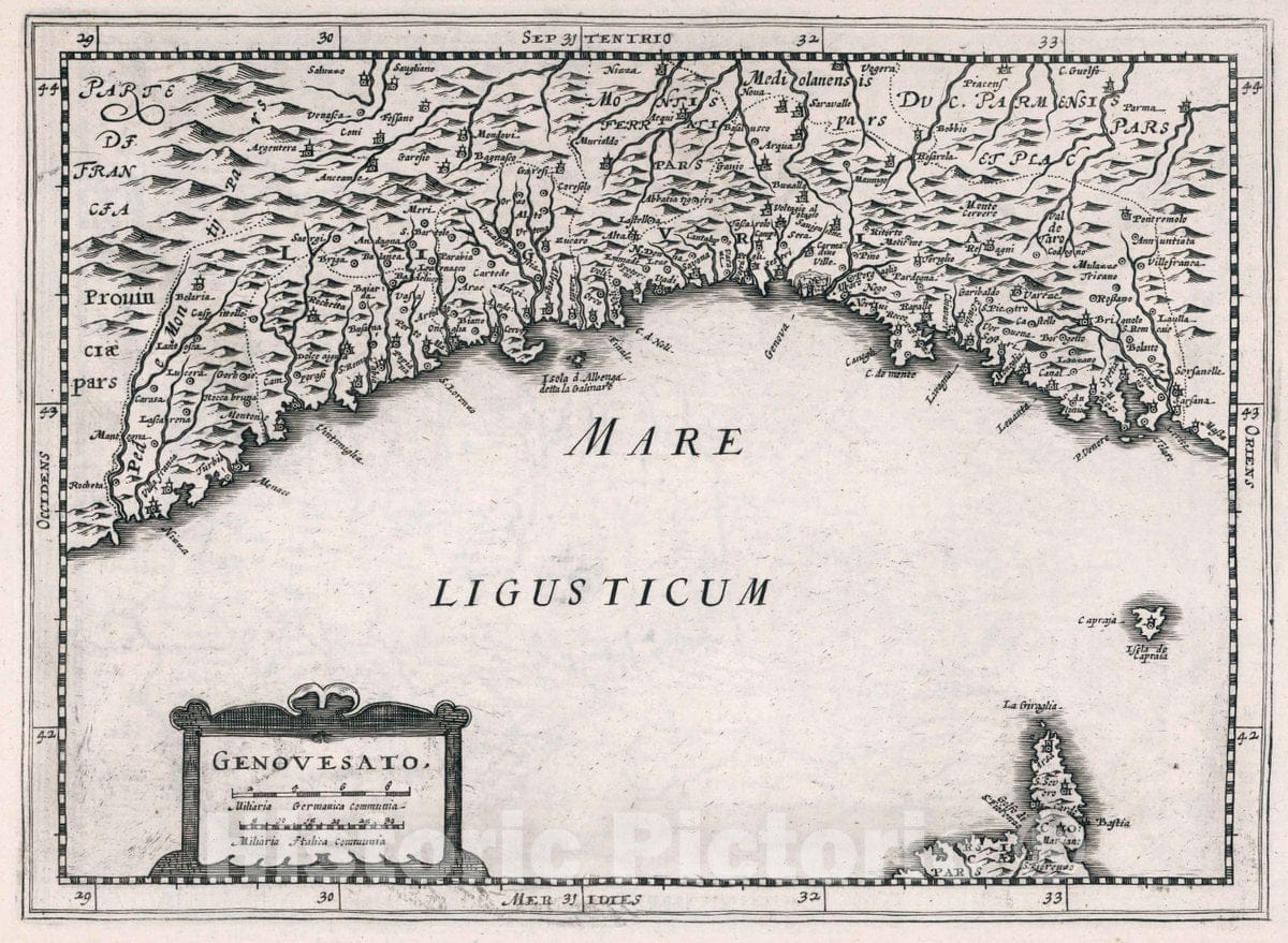 Historic Map : Italy , Genoa (Italy), Genovesato. Atlas sive Cosmographicae Meditationes de Fabrica Mundi et fabricati Figura, 1636 Atlas , Vintage Wall Art