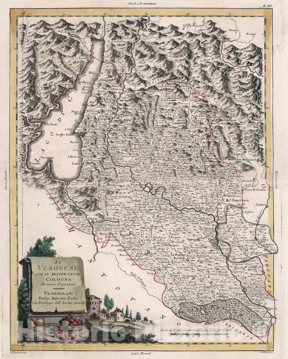 Historic Map : Italy, Il Veronese con : Il Distretto di Cologna : Di Nuova projezione. Venezia 1783. Presso Antonio Zatta, 1783 Atlas , Vintage Wall Art