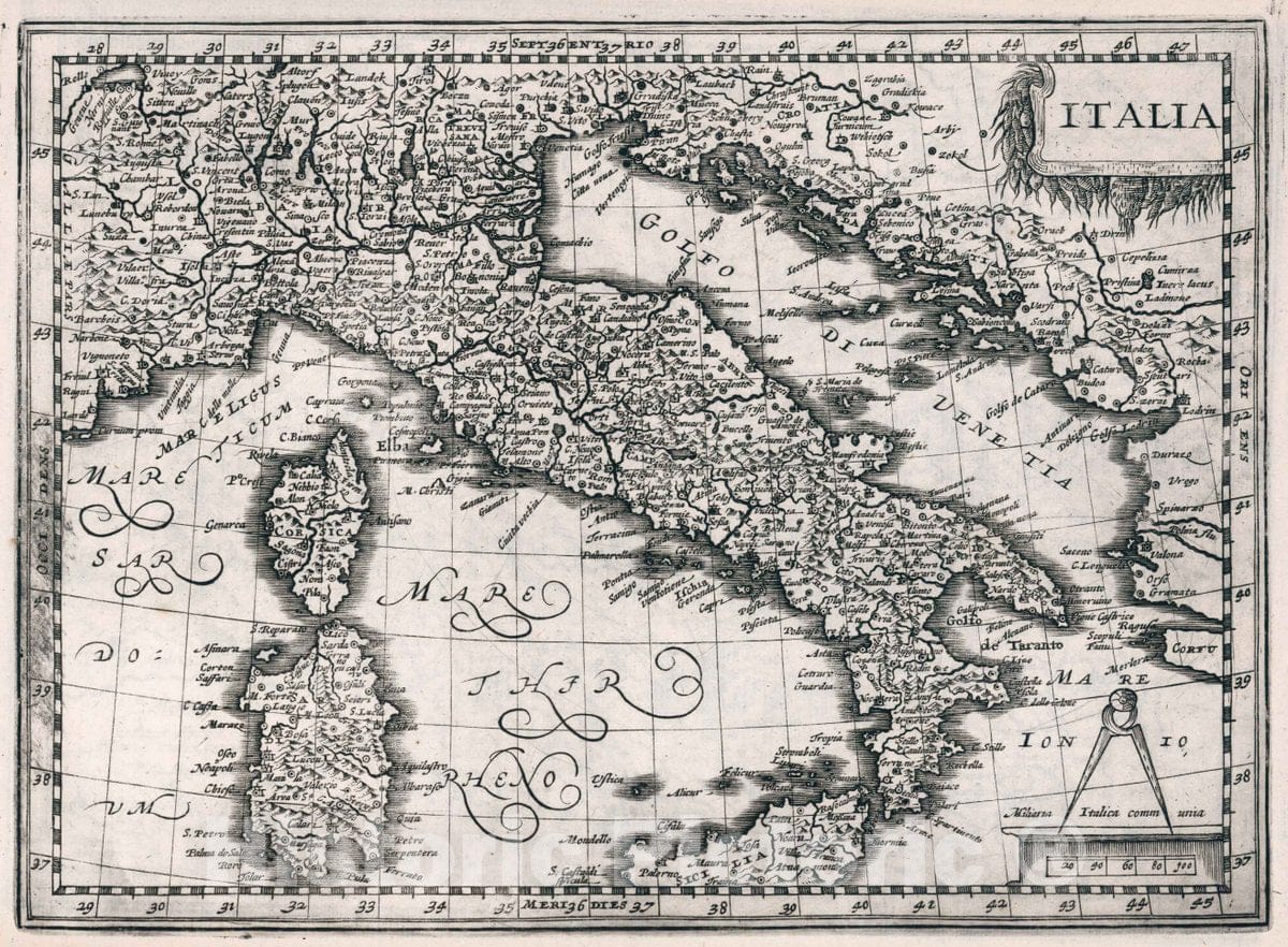 Historic Map : Italy, Italia. Atlas sive Cosmographicae Meditationes de Fabrica Mundi et fabricati Figura, 1636 Atlas , Vintage Wall Art