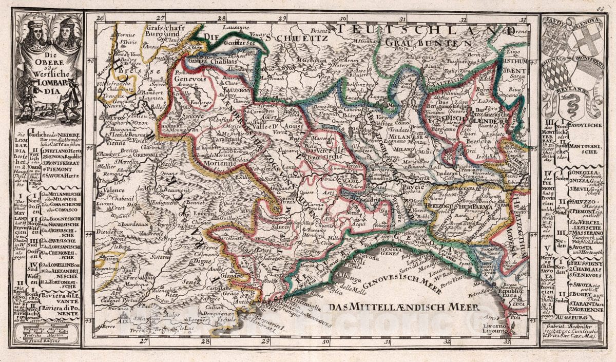 Historic Map : Italy, Lombardy (Italy), Europe 1716 Die Obere Oder Westliche Lombardia , Vintage Wall Art