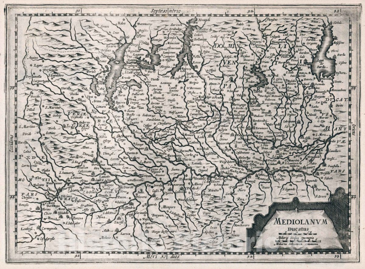 Historic Map : Italy, Mediolanum Ducatus. Atlas sive Cosmographicae Meditationes de Fabrica Mundi et fabricati Figura, 1636 Atlas , Vintage Wall Art