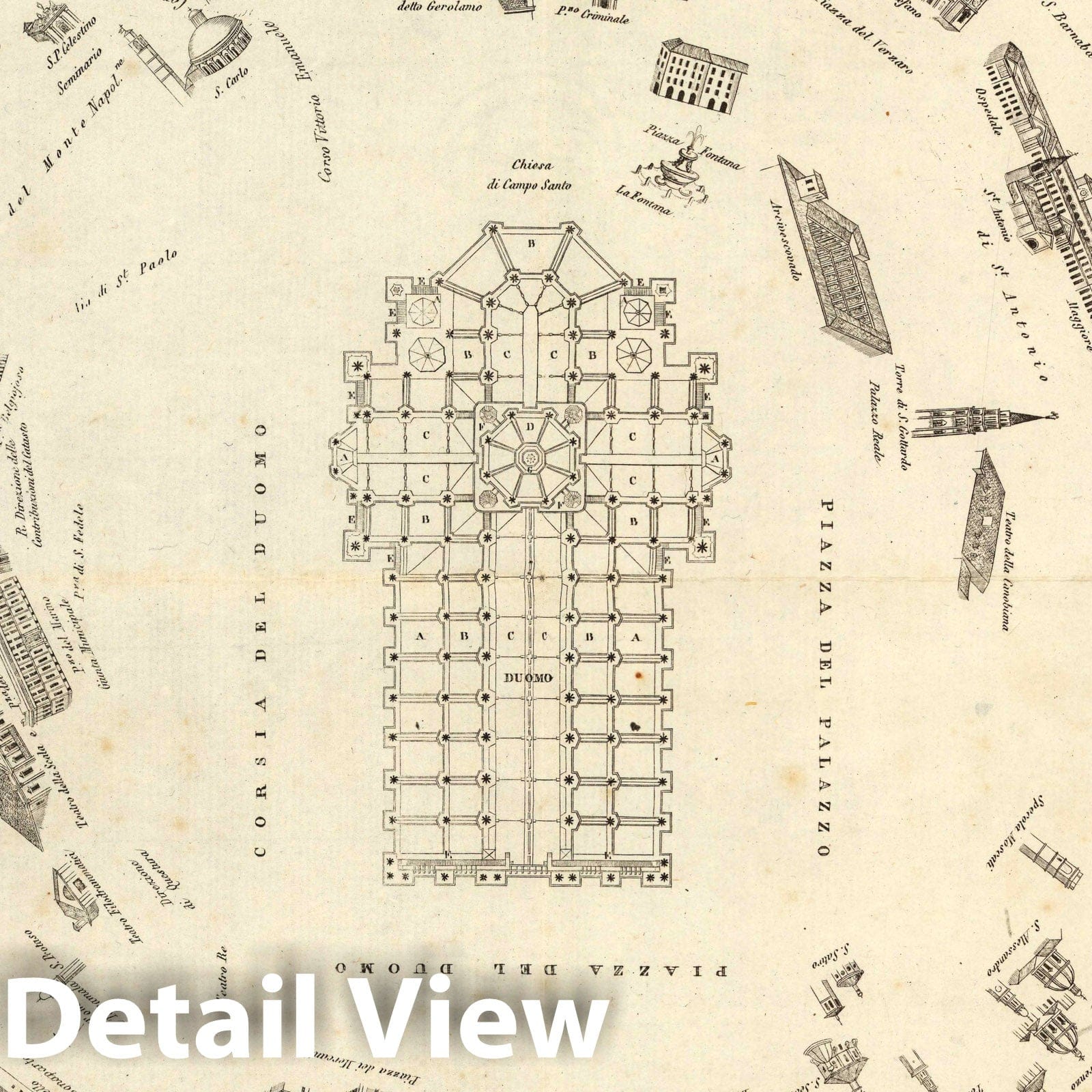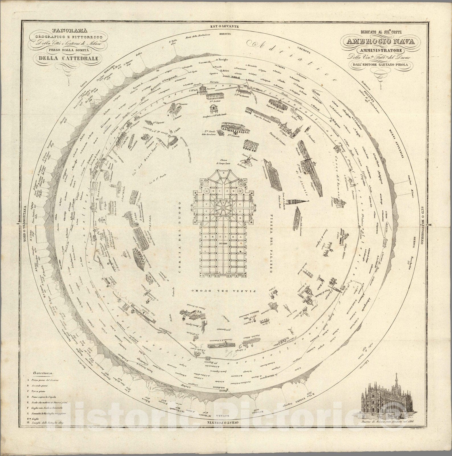 Panorama orografico e pittoresco della citta e contorni di Milano preso dalla somita della cattedrale. Dedicato al Sig.r Conte Ambrogio Nava Amministratore della Ven.da Fabb.ca del duomo dall'editore Gaetano Pirola. Leone Zucoli inc. (inset view) Duomo di Milano stato Fondato nel 1386. | Panorama orografico e pittoresco della citta e contorni di Milano preso dalla somita della cattedrale. Dedicato al Sig.r Conte Ambrogio Nava Amministratore della Ven.da Fabb.ca del duomo dall'editore Gaetano Pirola. Leone Zucoli inc. (inset view) Duomo di Milano stato Fondato nel 1386. | See note field above.