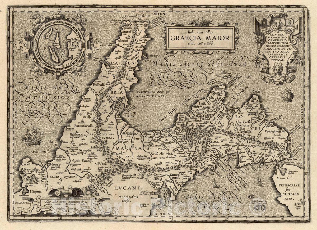 Historic Map : Italy, Naples Region (Italy) Graecia Maior. Abrahamus Ortelius. cum Privilegio decennali, 1595 , Vintage Wall Art