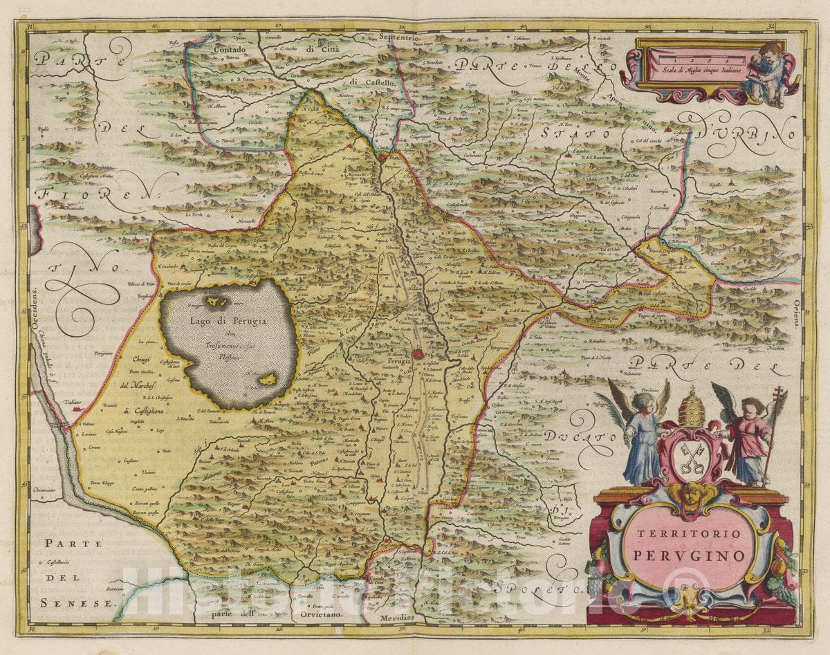 Italy, Perugia Region (Italy) Atlas Maior Sive Cosmographia Blaviana, Territorio Pervgino, 1665 Atlas , Vintage Wall Art