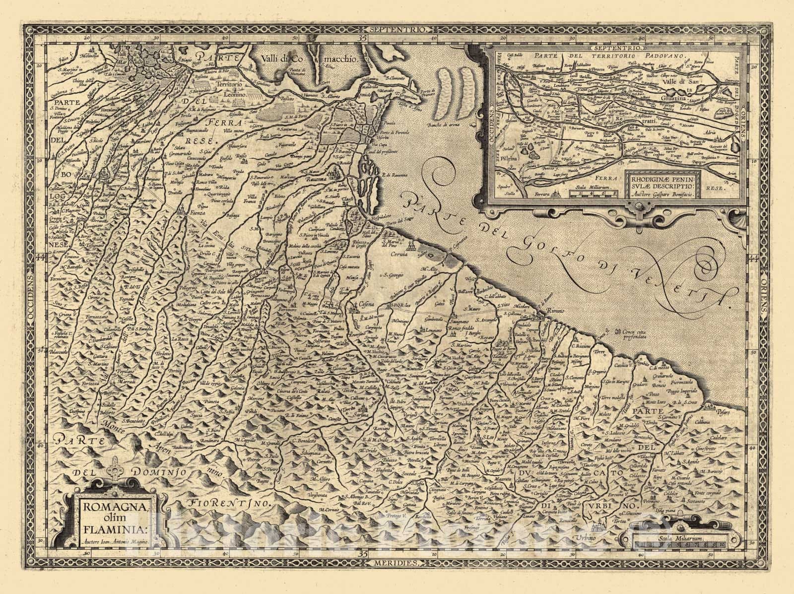 Historic Map : Italy, Romagna, olim Flaminia: Auctore Ioan. Antonio Magino, 1608 Atlas , Vintage Wall Art