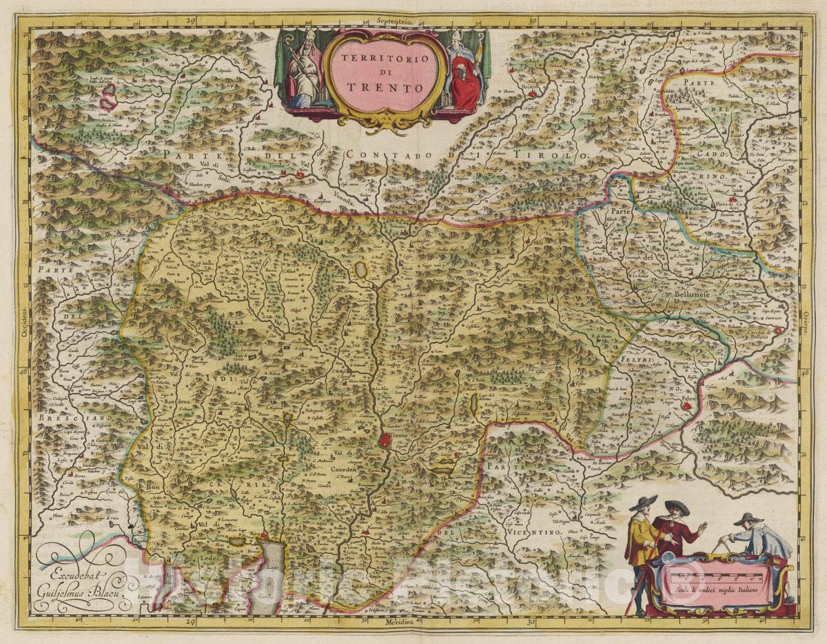Historic Map : Italy, Trento Region (Italy) Atlas Maior Sive Cosmographia Blaviana, Territorio Di Trento , Vintage Wall Art