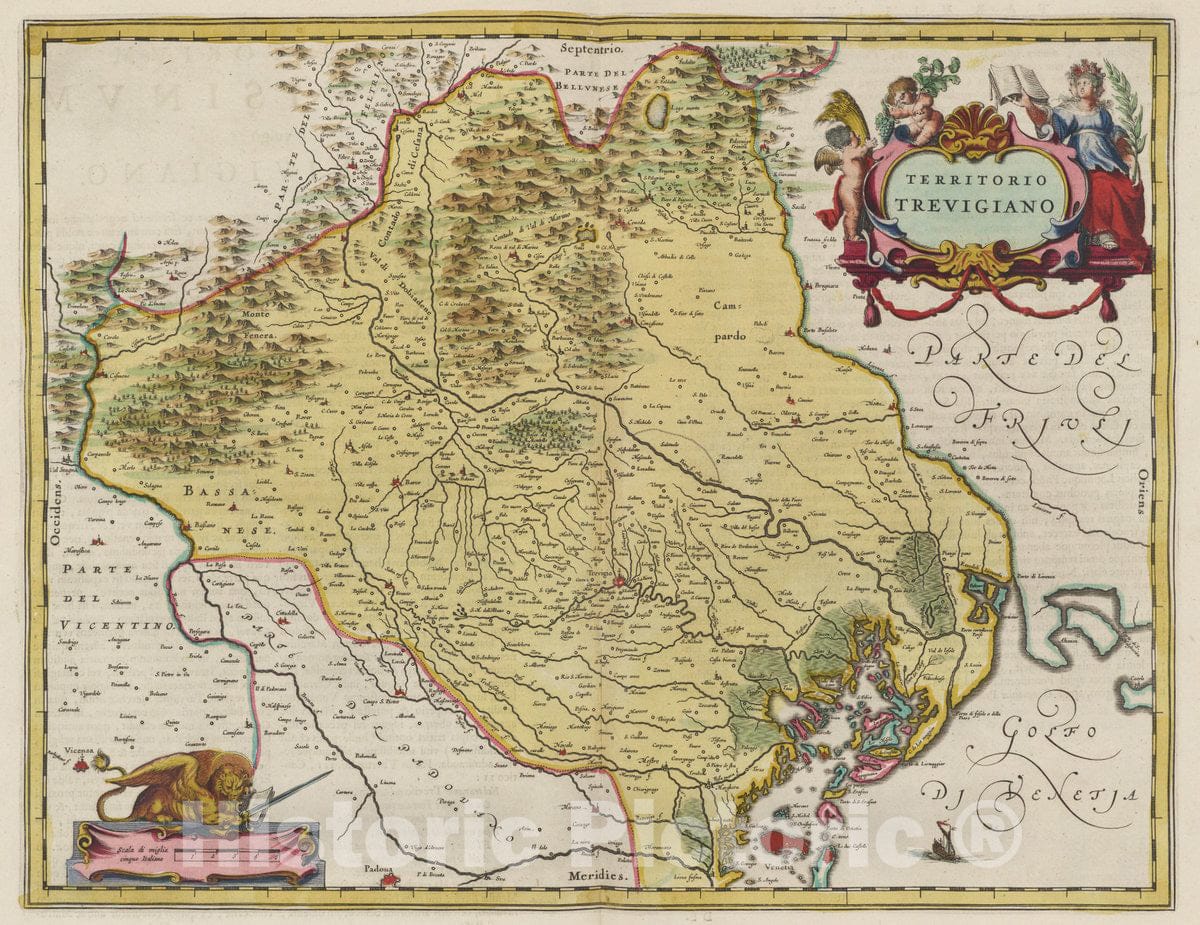Historic Map : Italy, Treviso Region (Italy) Atlas Maior Sive Cosmographia Blaviana, Territorio Trevigiano, 1665 Atlas , Vintage Wall Art