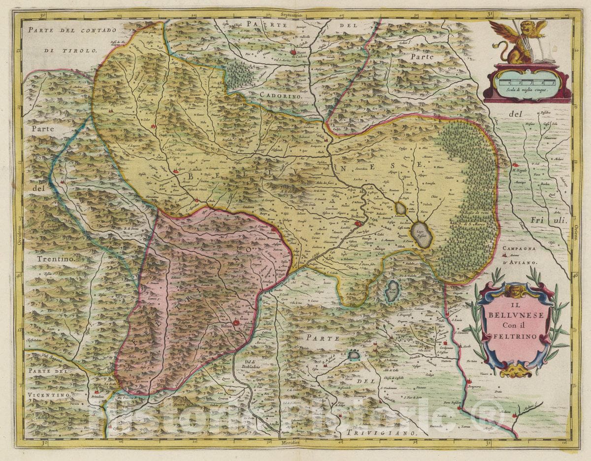 Historic Map : Italy, Treviso Region (Italy) Il Bellvnese con il Feltrino, 1665 Atlas , Vintage Wall Art