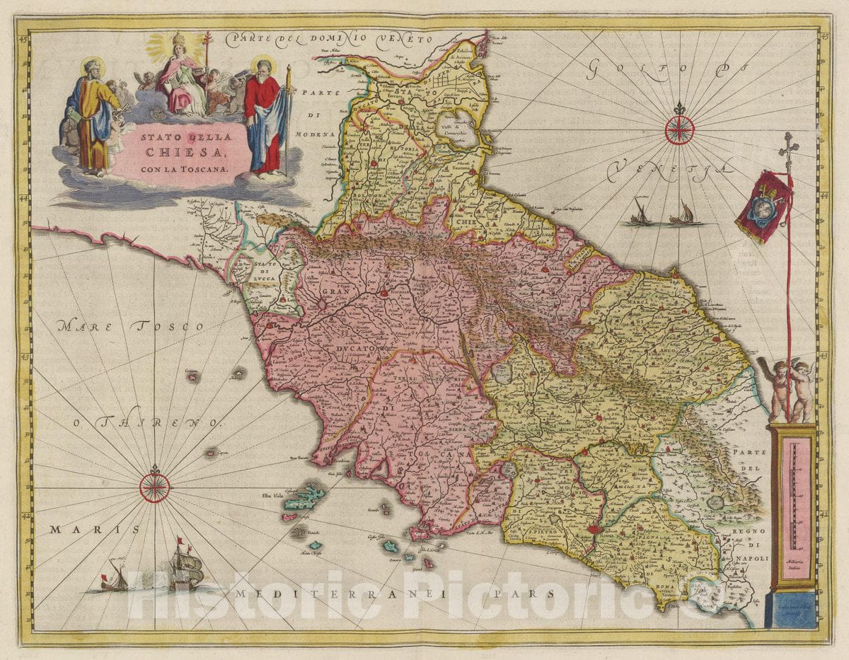 • .Historic Map : Italy, Tuscany (Italy) Stato Della Chiesa Con La Toscana, 1665 Atlas , Vintage Wall Art