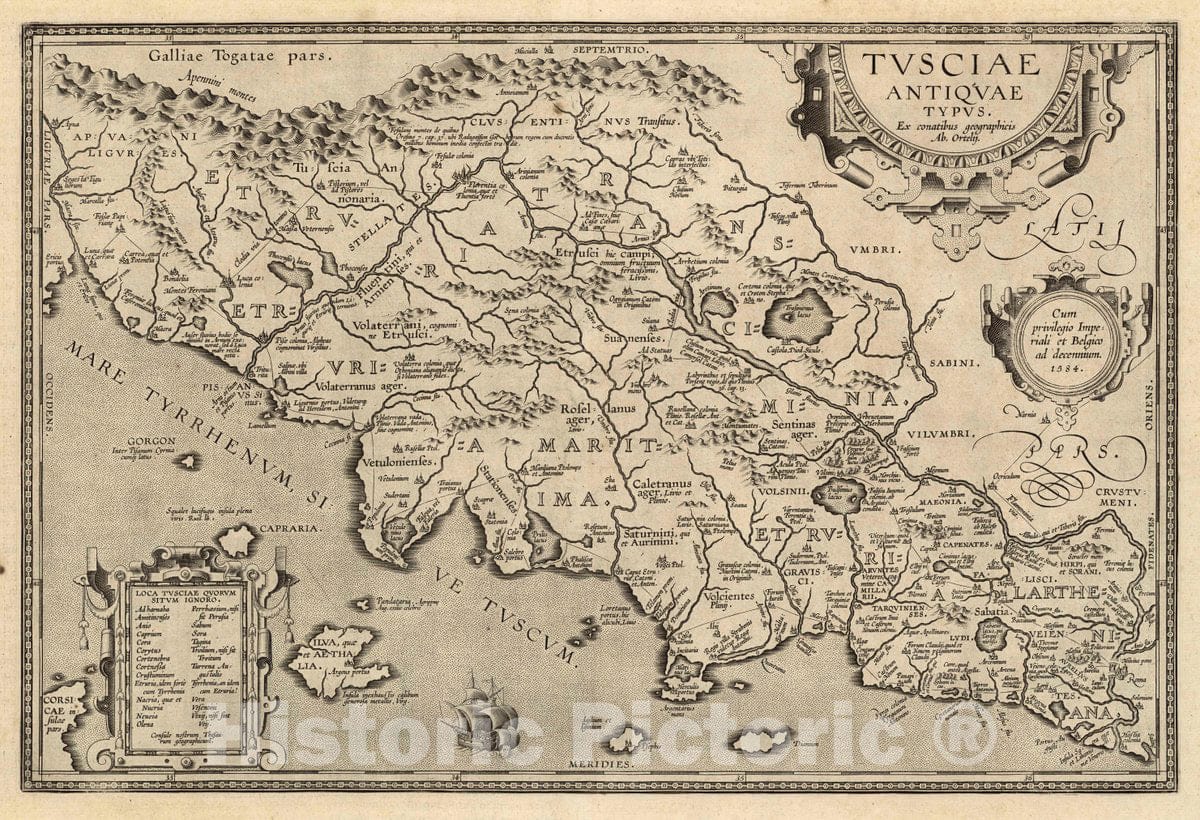 • .Historic Map : Italy, Tuscany (Italy) (xxii) Tusciae Antiquae Typus, 1584 Atlas , Vintage Wall Art