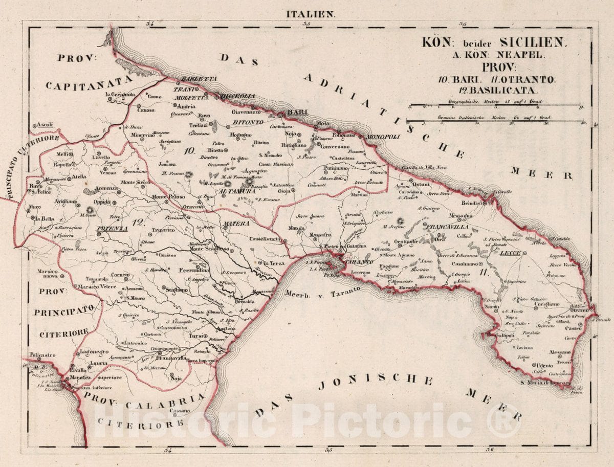 Historic Map : Italy, V.3:11-15:XIV. Italien. I. Kon: beider Sicilien. A. Kon: Neapel. Prov: 10-12, 1829 Atlas , Vintage Wall Art