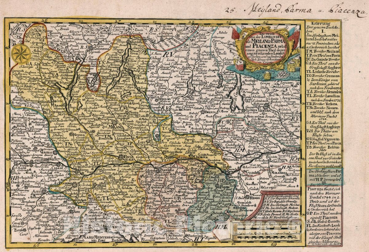 • Historic Map : Italy, Vol 1:25- Die meiste von der Lombardy ALS Meyland Prama und Picacenza, 1740 Atlas , Vintage Wall Art