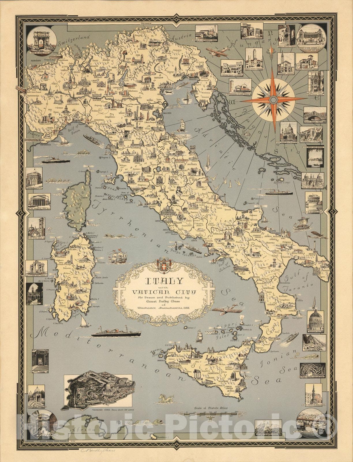 Historic Map : Italy, with Vatican City : as drawn and published by Ernest Dudley Chase 1935 - Vintage Wall Art