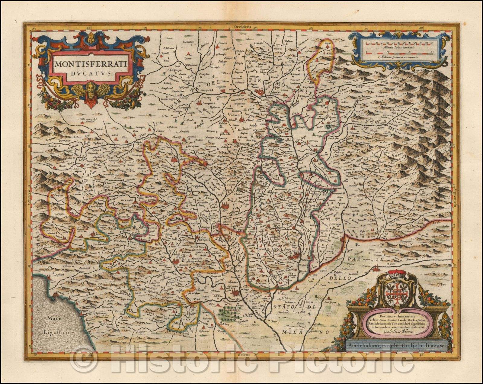 Historic Map - Montisferrati Ducatus/Blaeu's Regional Map of Northern Italy, Turin, Alba, Aste, Allesandria della Paglia, 1640, Willem Janszoon Blaeu - Vintage Wall Art