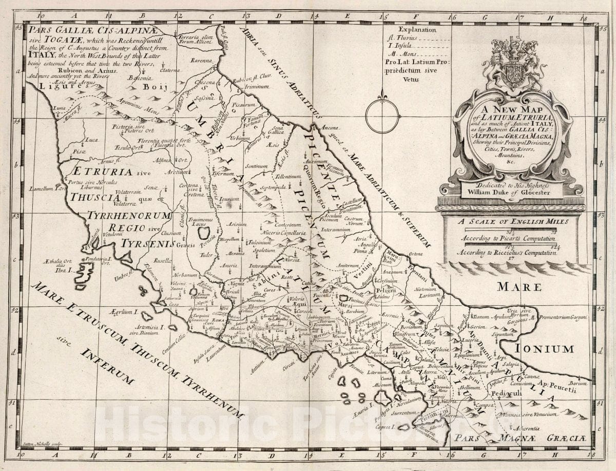 Historic Map : A New Map of Latium Etruria and as Much of Antient Italy, 1700 Atlas - Vintage Wall Art
