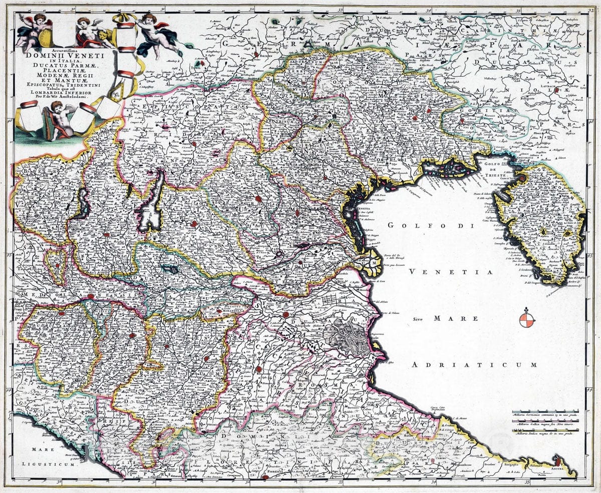 • .Historic Map : Northeast Italy 1682 Accuratissima Dominii Veneti in Italia, Ducatus Parmae, Placentiae, Modenae Regii et Mantuae. , Vintage Wall Art
