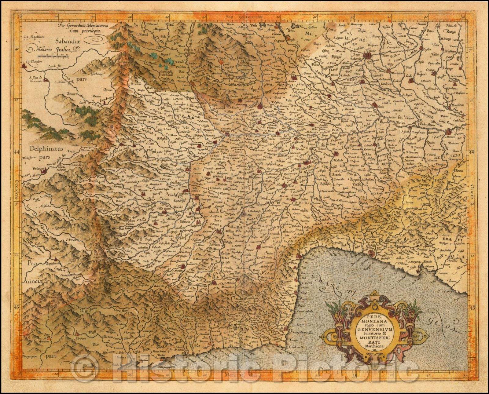 Historic Map - Pedemontana regio cum Genuensium territorio & Montiserrati Marchionatu/Regional Map of Italy, Pedemont Region of Italy and Genoa, 1610 - Vintage Wall Art