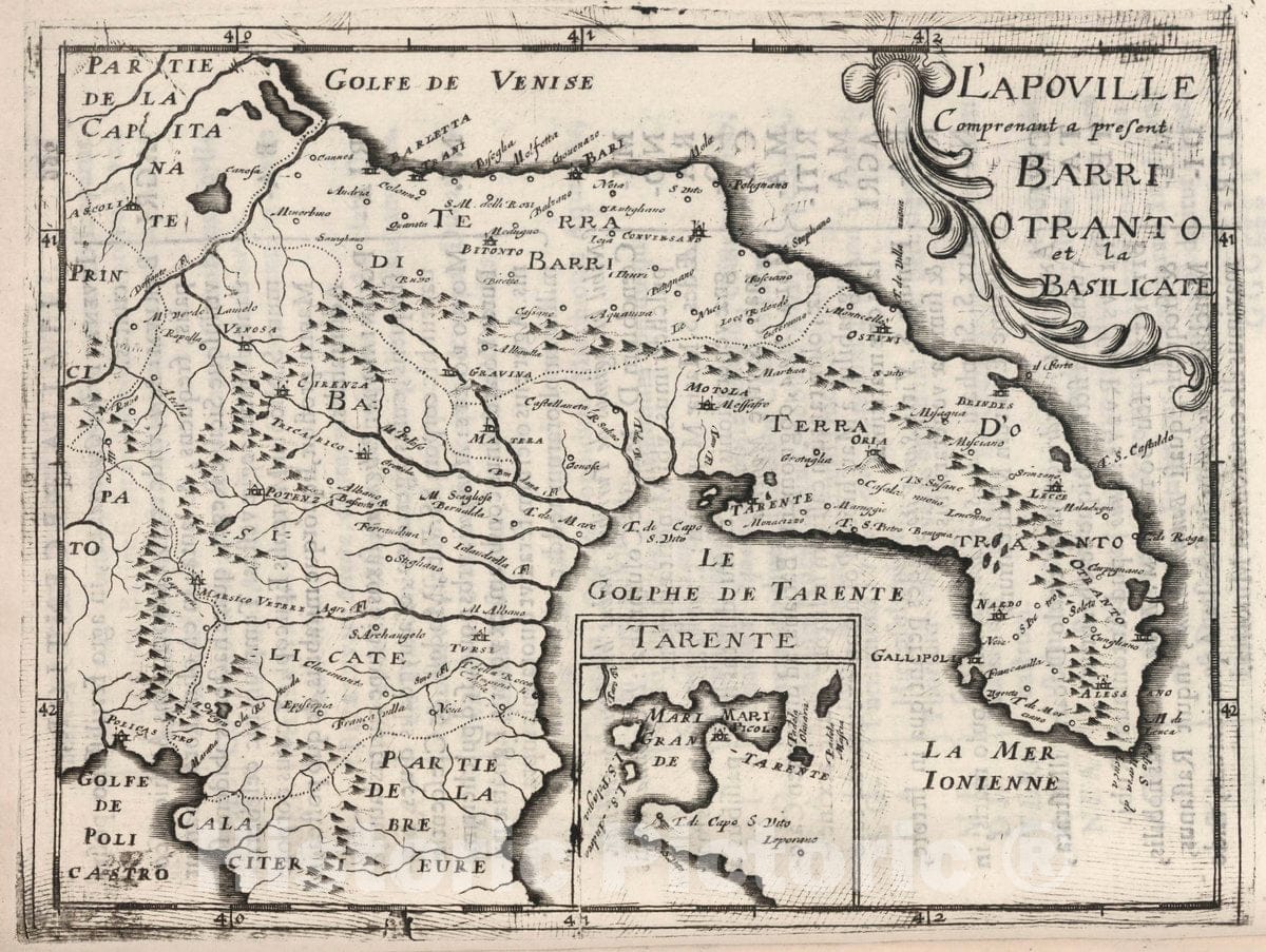 • .Historic Map : Taranto (Italy) L'Apoville Comprenant a Present Barri Otranto et la Basilicate, 1649 , Vintage Wall Art