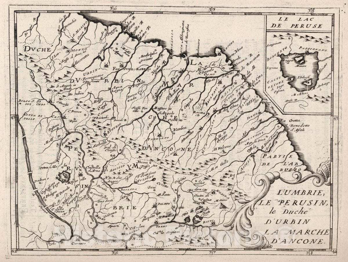 Historic Map : Umbria (Italy) L'Umbrie le Perusin le Duche D'Urbin la Marche D'Ancone, 1649 , Vintage Wall Art