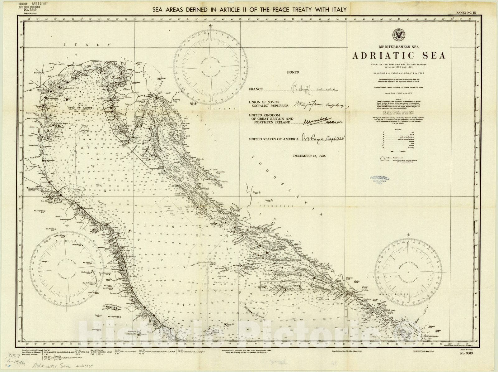 Map : Adriatic Sea 1946, Sea areas defined in Article 11 of the peace treaty with Italy : [northern Adriatic Sea], Antique Vintage Reproduction