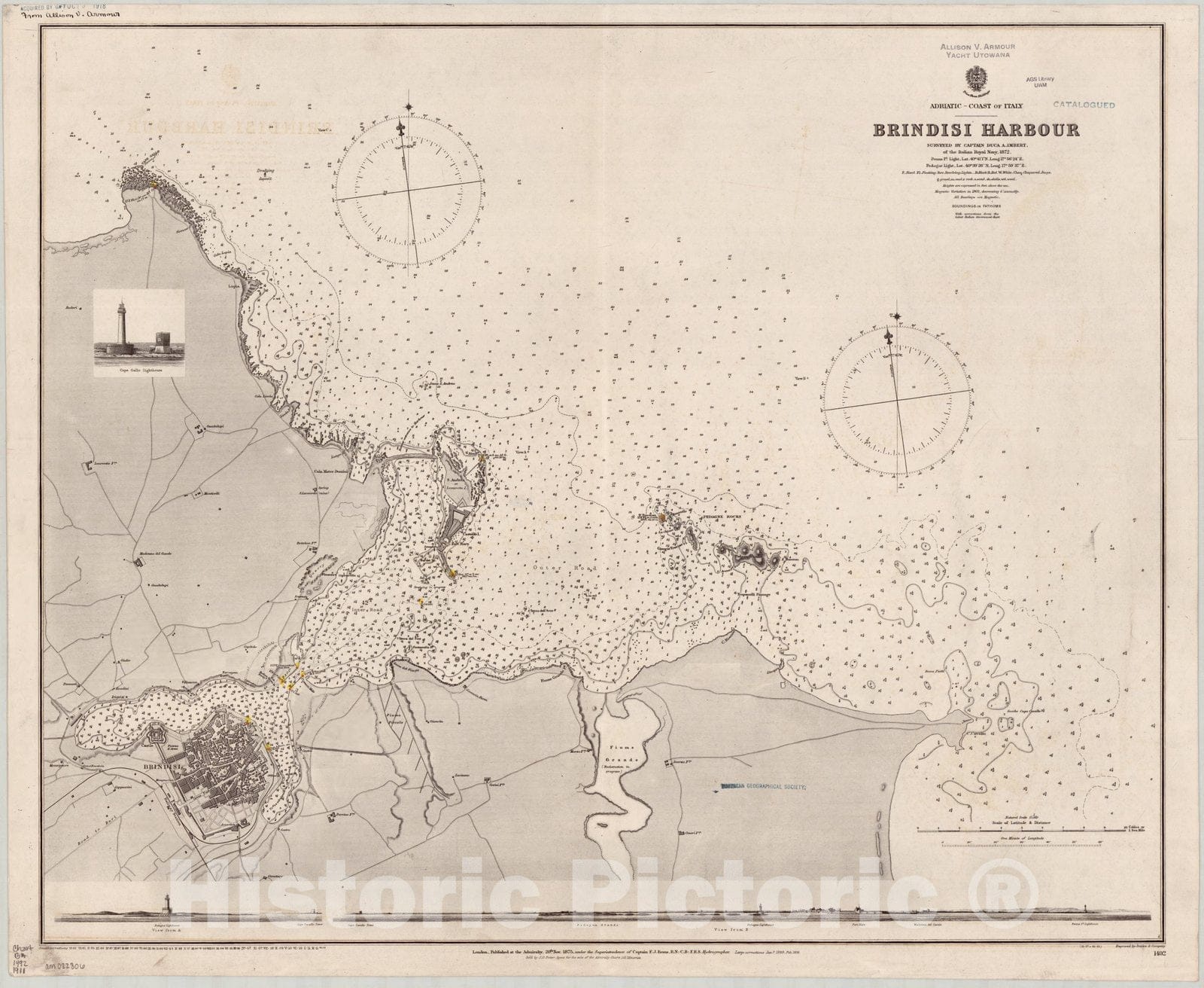 Adriatic, coast of Italy, Brindisi Harbour / published at the Admiralty 20th Novr. 1875 ; Engraved by Davies & Company