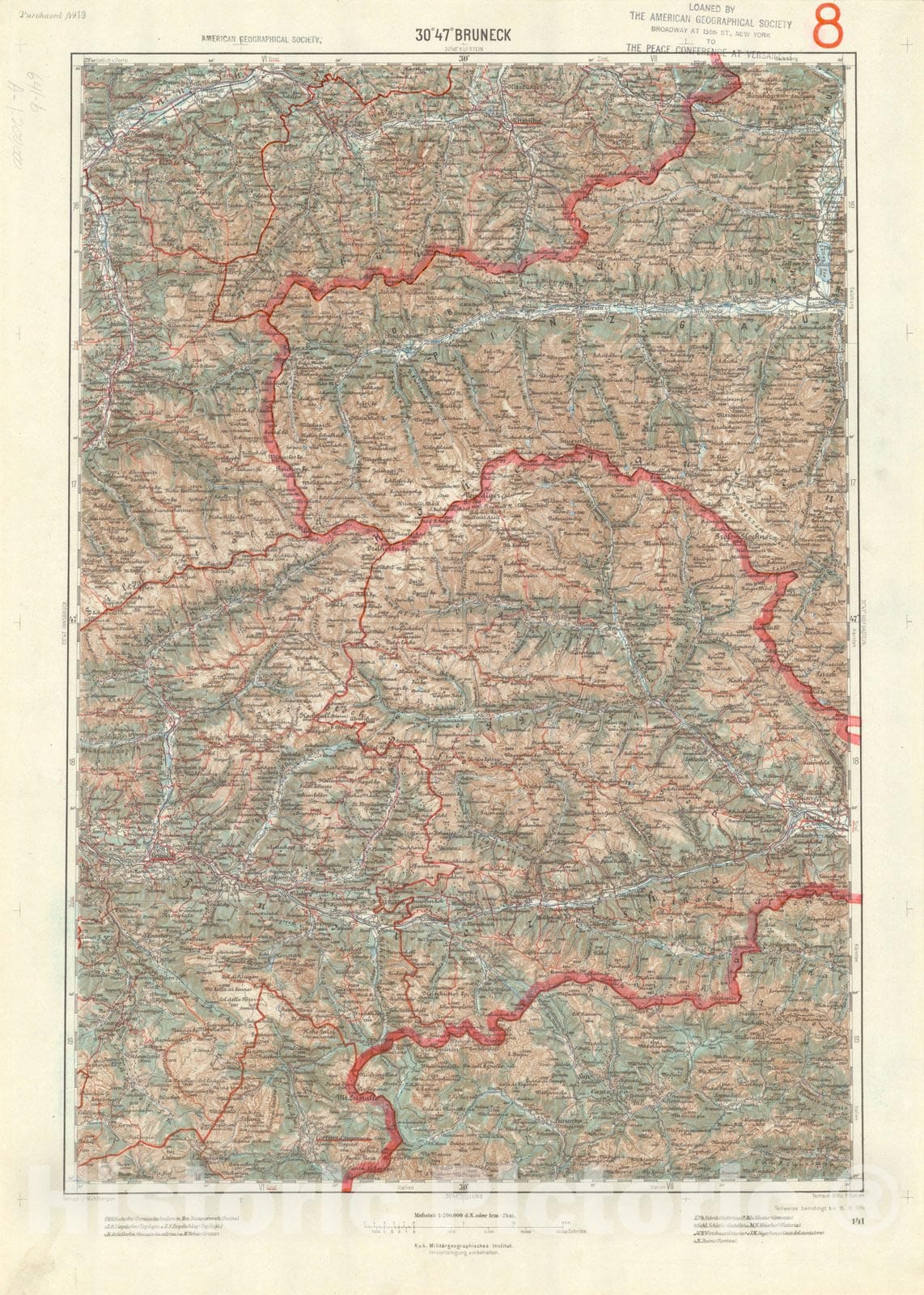 Map : Bruneck, Italy 1914, Generalkarte von Mitteleuropa, Antique Vintage Reproduction