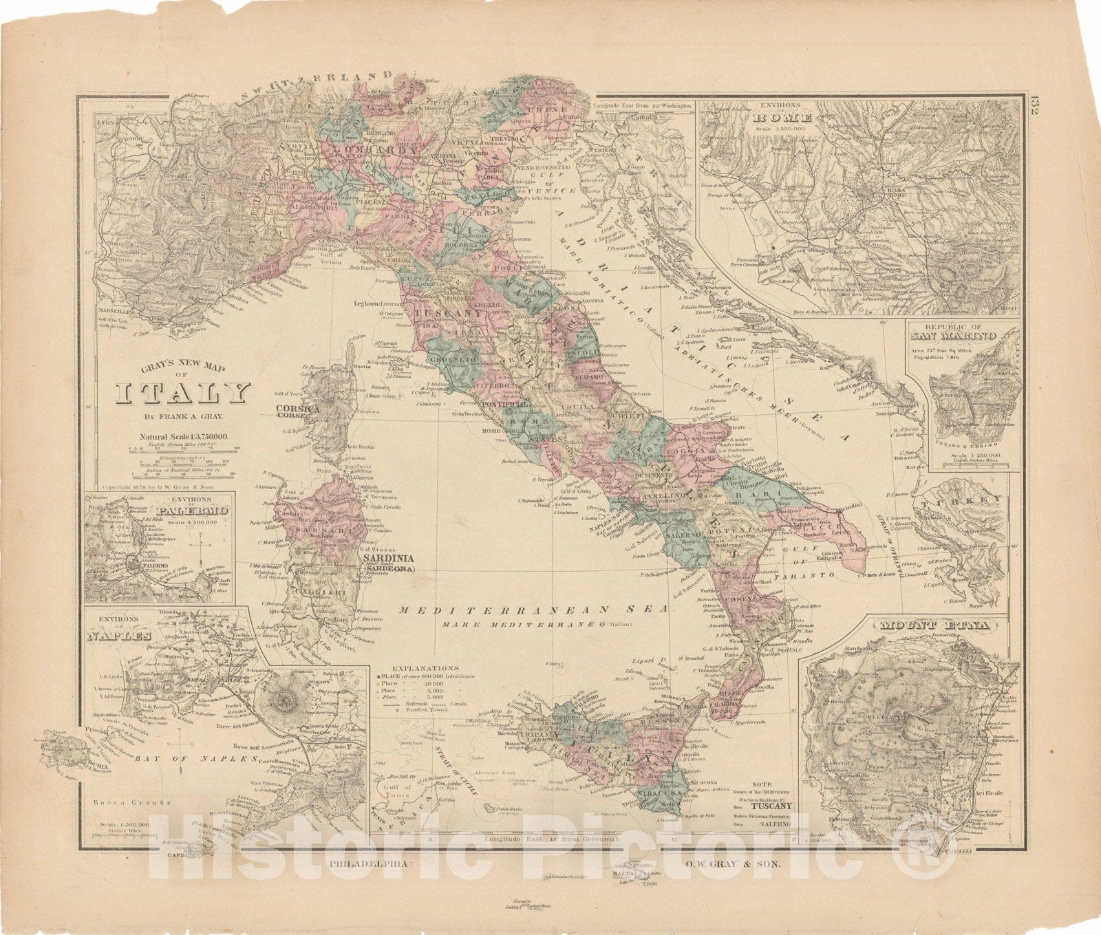 Historic Map : Europe, Italy 1855 , Vintage Wall Art
